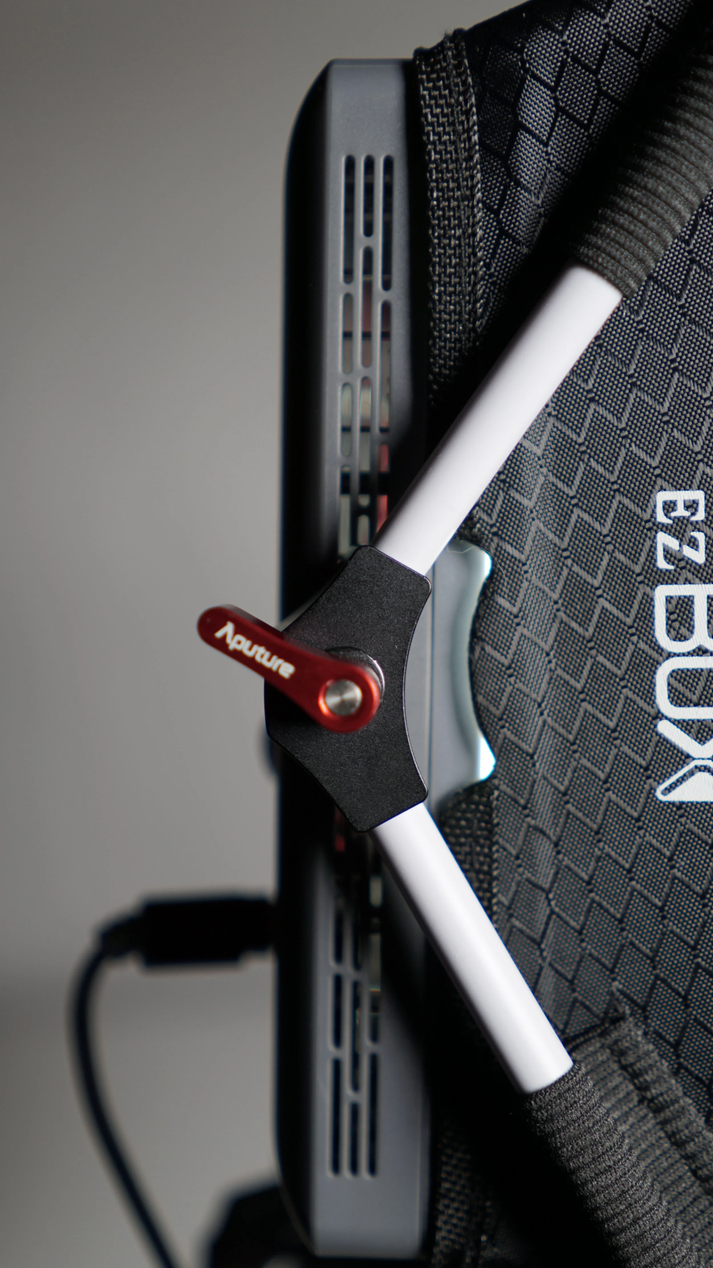 Aputure takes advantage of the 1/4" threaded sockets already in the Amaran on each side, allowing the 'box to easily clear all the vents while keeping light spill to a minimum. Very nice, but when you unscrew them it's very easy for the pieces to separate as the tension is gone.