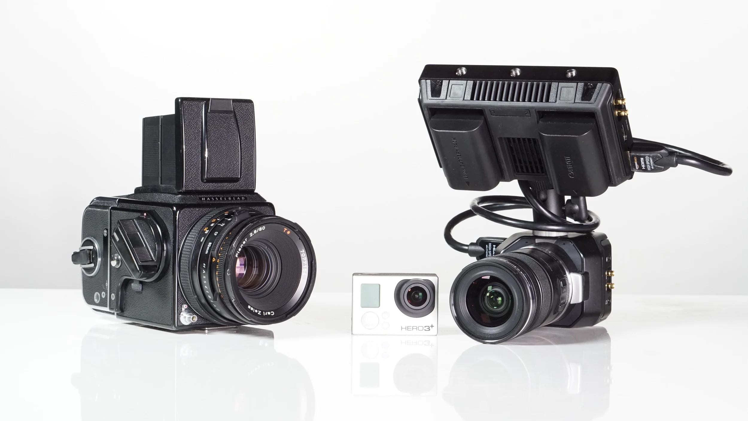 GoPro Hero3+ (mine); Blackmagic Design Micro Studio 4K (courtesy Blackmagic) with Olympus M. Zuiko ED 12-50mm f/3.5-6.3 PZ, Hasselblad 500C/M with Carl Zeiss 80mm f/2.8 Planar (courtesy of KEH)