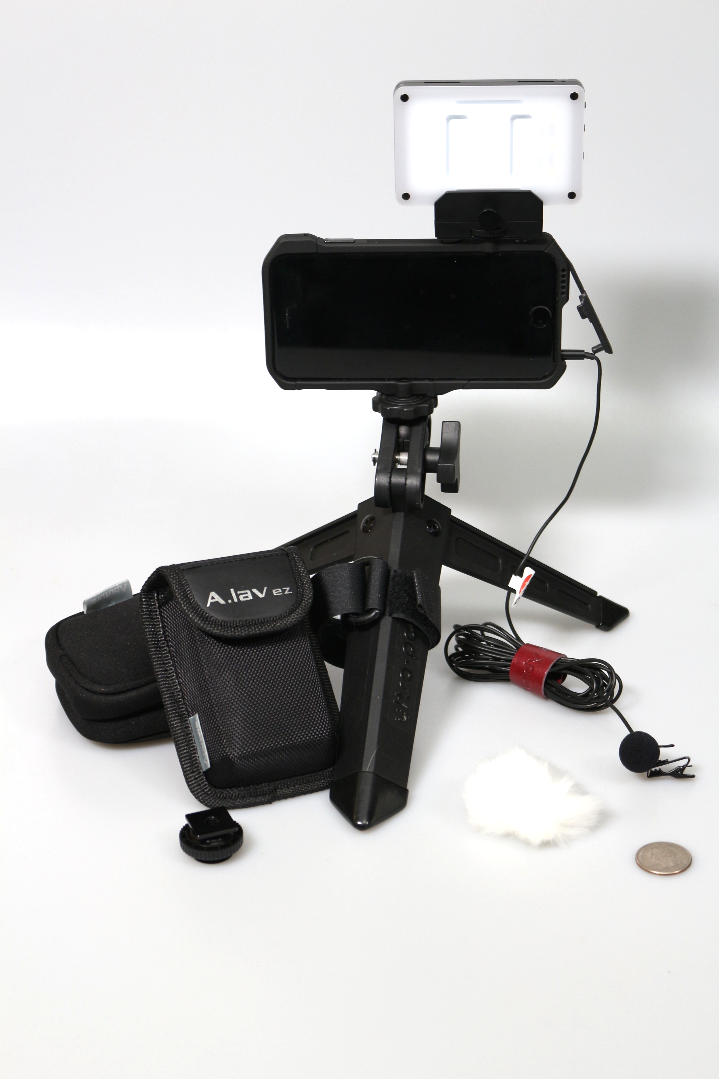 I'm talking about the smartphone version of their wired A-lav mic, the A-lav EZ; and the not-yet-released, completely unexpected and lovely little micro-LED panel, the Amaran Lighting Up.